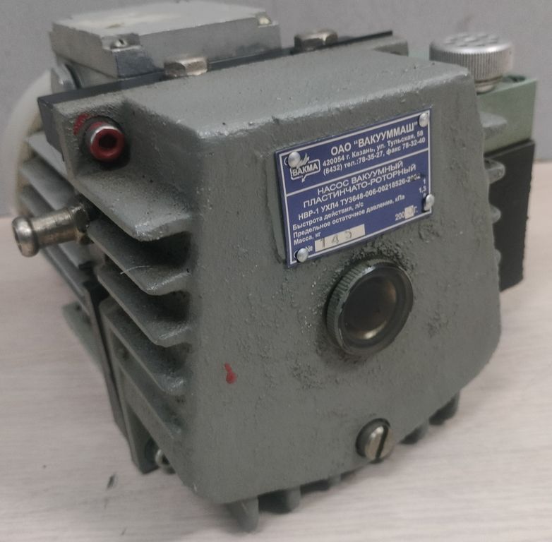 Насос вакуумный пластинчато-роторный НВР-1 выполнен по ТУ 3648-006-00218526-2002. Условный проход патрубков: входного -8 мм, выходного - 8 мм.